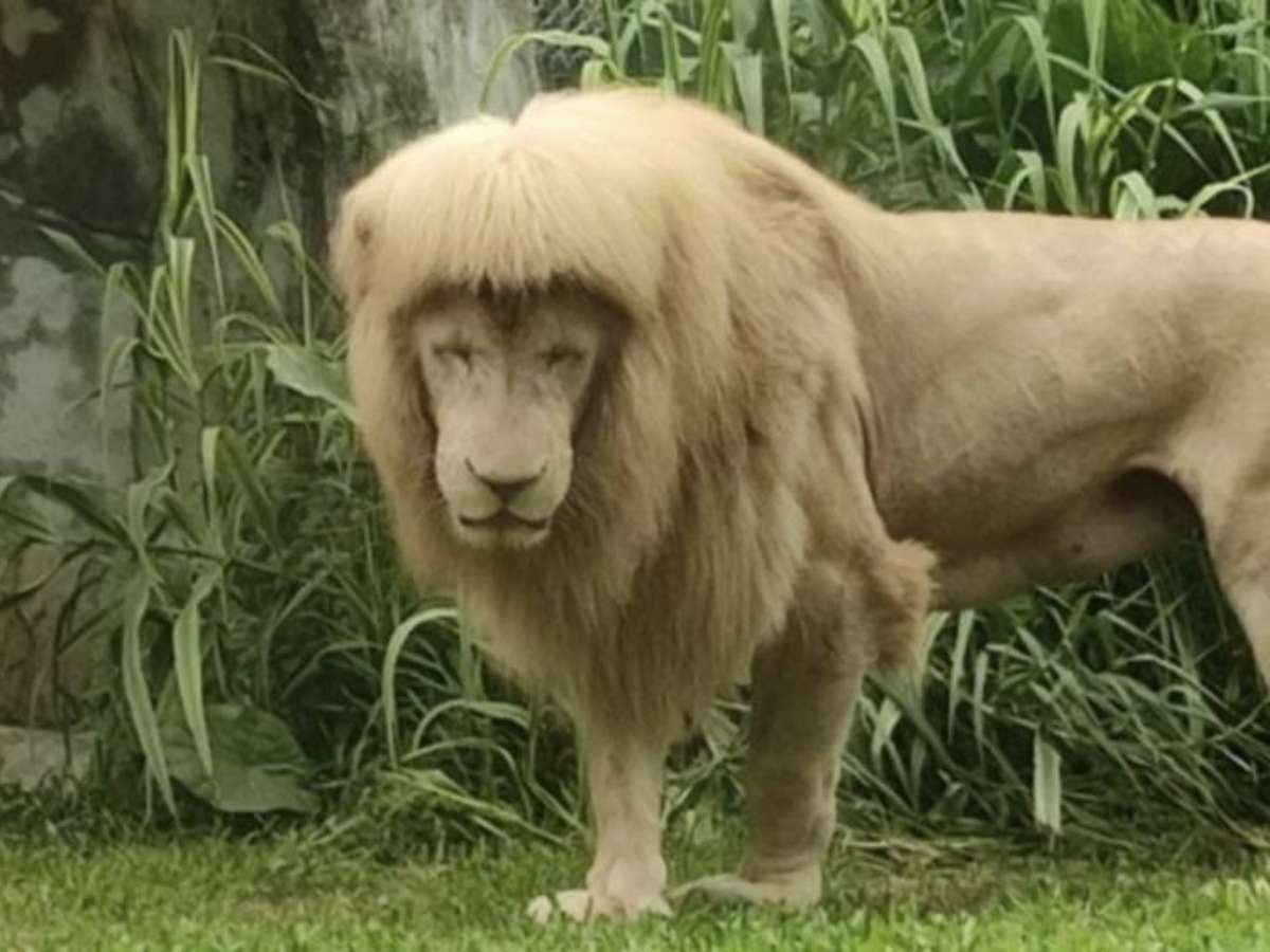Apesar de leões serem famosos pelas jubas que chamam a atenção, um dos residente do zoológico de Guangzhou, na China, viralizou nas redes sociais por sua aparência inusitada.