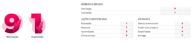 Veja no exemplo abaixo que a pessoa tem o 9 como Motivação, portanto, este é o Número do Amor dela.