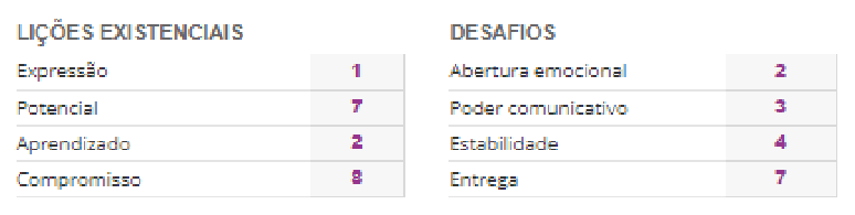 Já as Lições Existenciais são aprendizados profundos que sua jornada pede que você desenvolva.