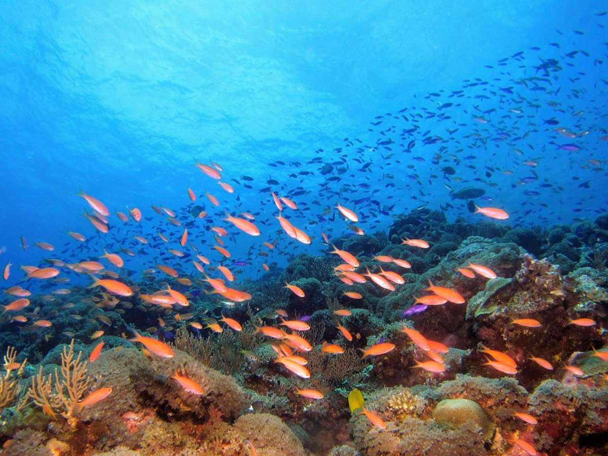 - Você está nadando ao lado de vários peixes, no mar ou num rio?