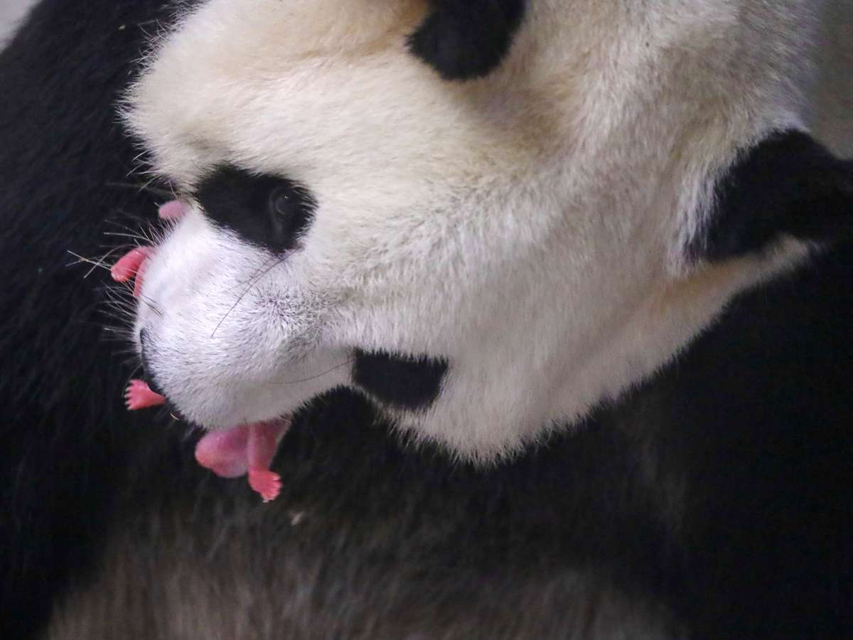 Descritos pelo zoológico como "camarão rosa" no Facebook, os recém-nascidos são cor-de-rosa, sem pelos e muito menores do que seus pais. De acordo com o World Wildlife Fund, bebês pandas têm um 900 avos do tamanho da mãe.