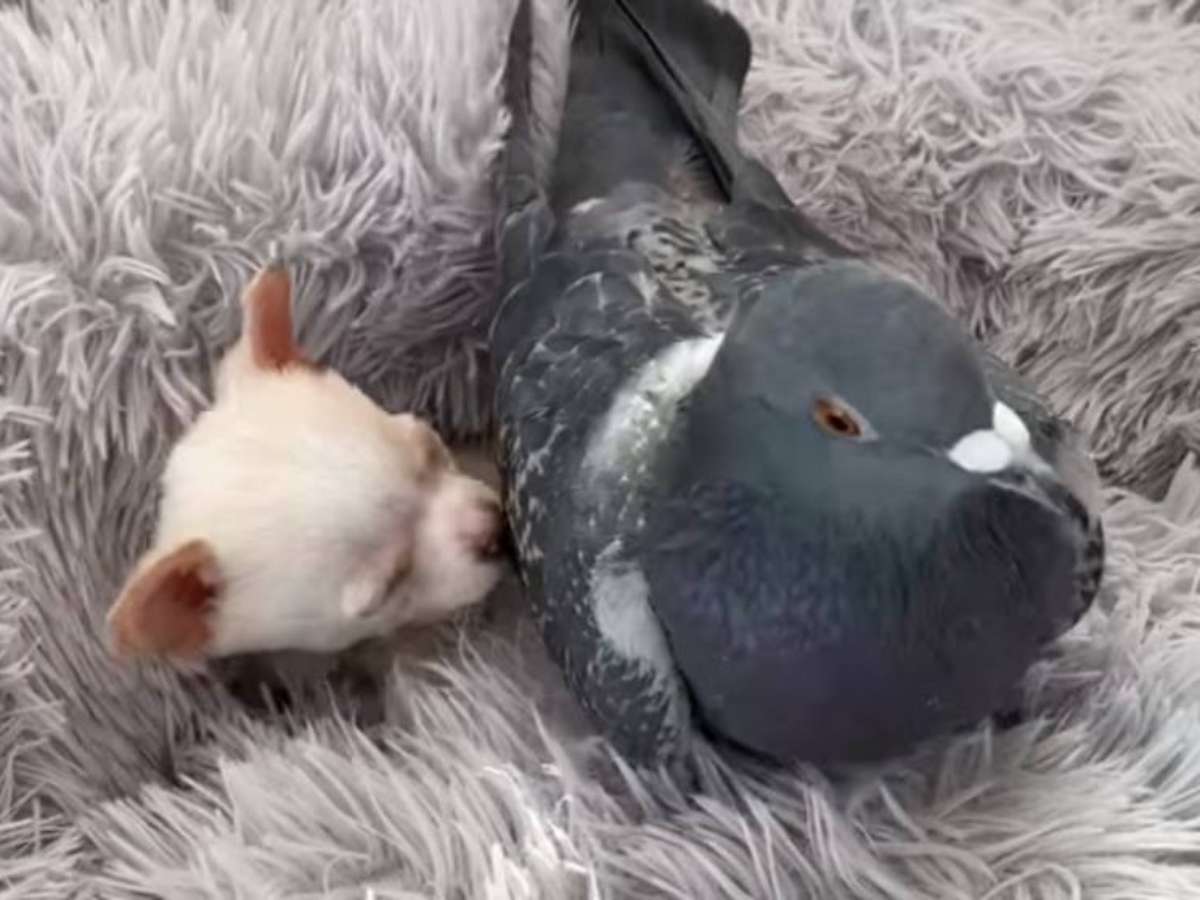 Você já pensou em um pássaro e um cachorro virando parceiros de vida? Apesar de ser algo difícil de se imaginar, foi o que aconteceu entre o pombo Herman e o chihuahua Lundy.