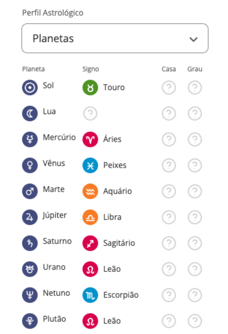 - Na imagem abaixo, veja um exemplo de um pai que não se sabe a hora de nascimento, apenas a data. Perceba que ele tem Sol em Touro e Saturno em Sagitário. Com isso, já é possível conferir as dicas de presente para o dia dos pais de acordo com cada signo dele.