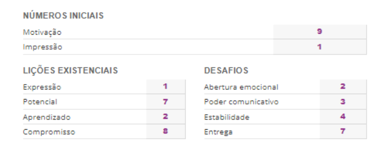 - Aparecerão abaixo quatro números, e todos eles são os seus Desafios Numerológicos. Anote!