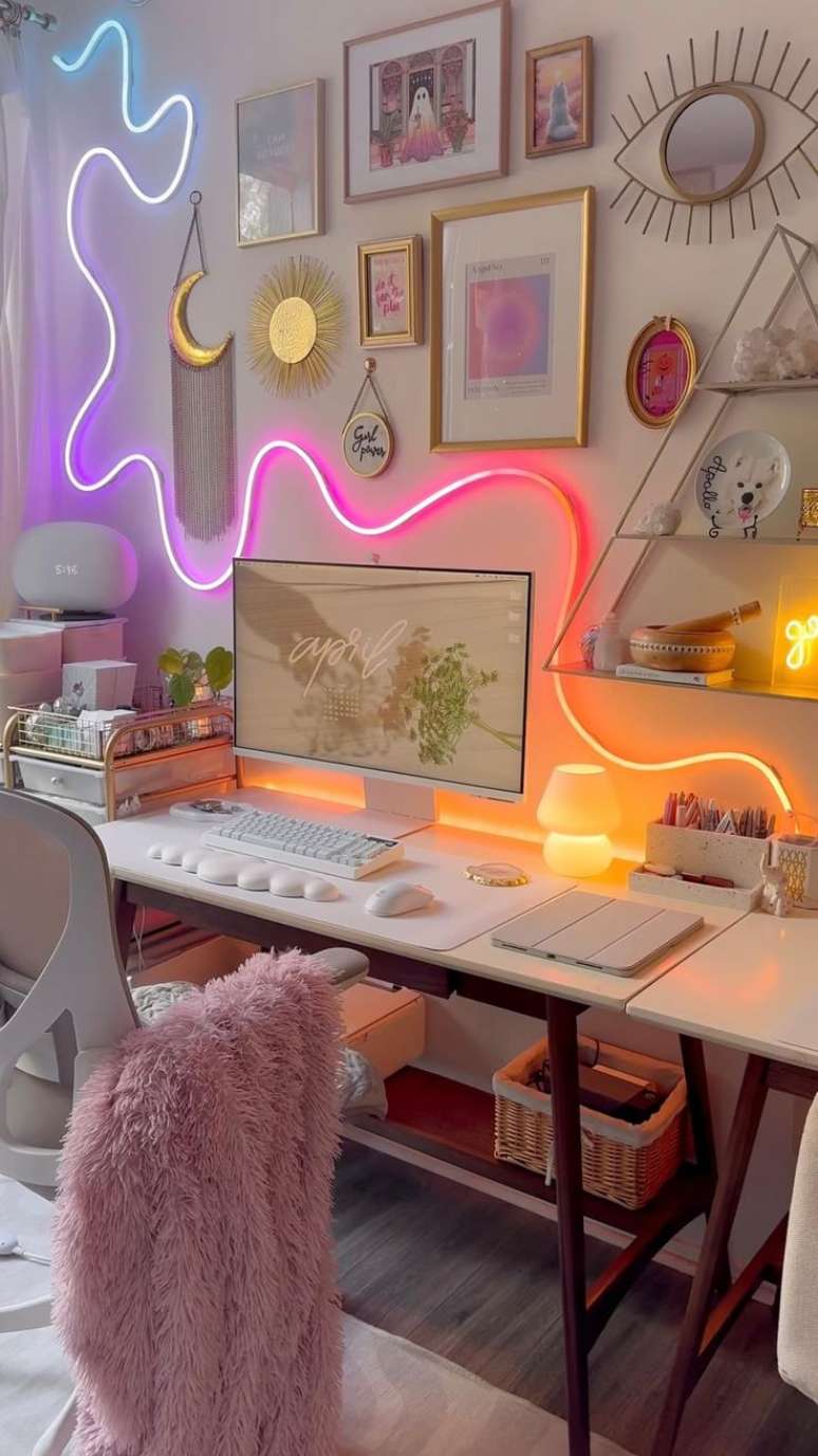 Quer personalidade em seu cantinho de estudos? Aposte no led colorido - Foto: reprodução/Pinterest.