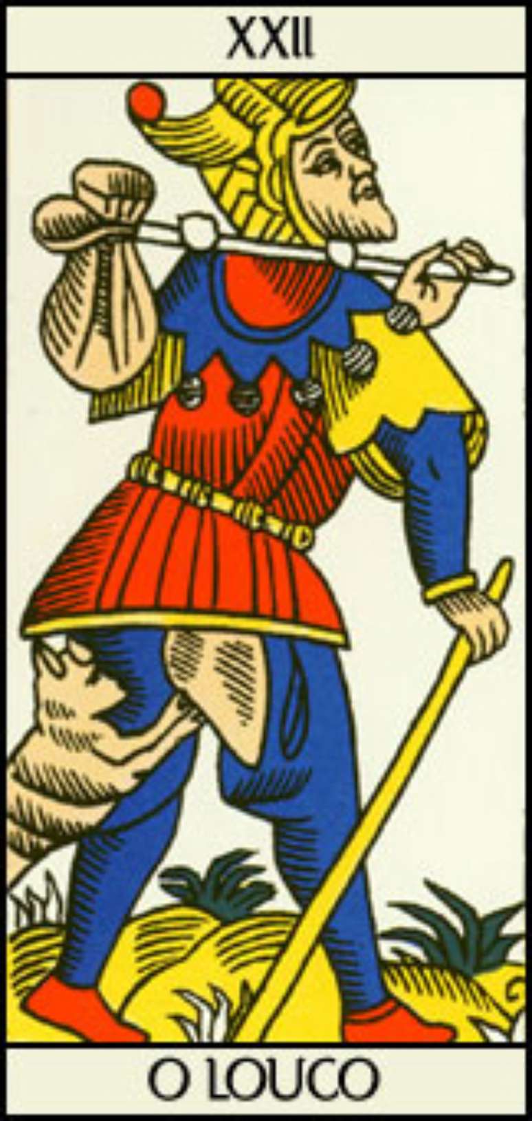 Alguns baralhos o apresentam como 0, outros como 22, e há aqueles em que ele não tem nenhum número.]