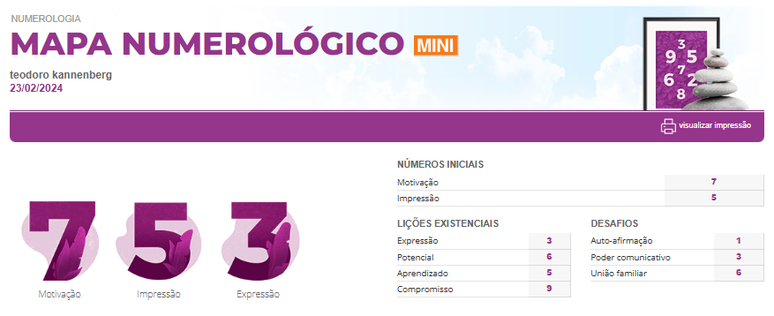 - Então, o Personare irá calcular todo o seu Mapa Numerológico