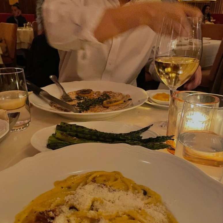 Quem abrir o story pela primeira vez, vai ver apenas uma mesa de restaurante. Porém, aos poucos, eles vão começar a reparar que temos dois pratos, duas bebidas e quem sabe até uma mãozinha masculina do outro lado da mesa. Epa!