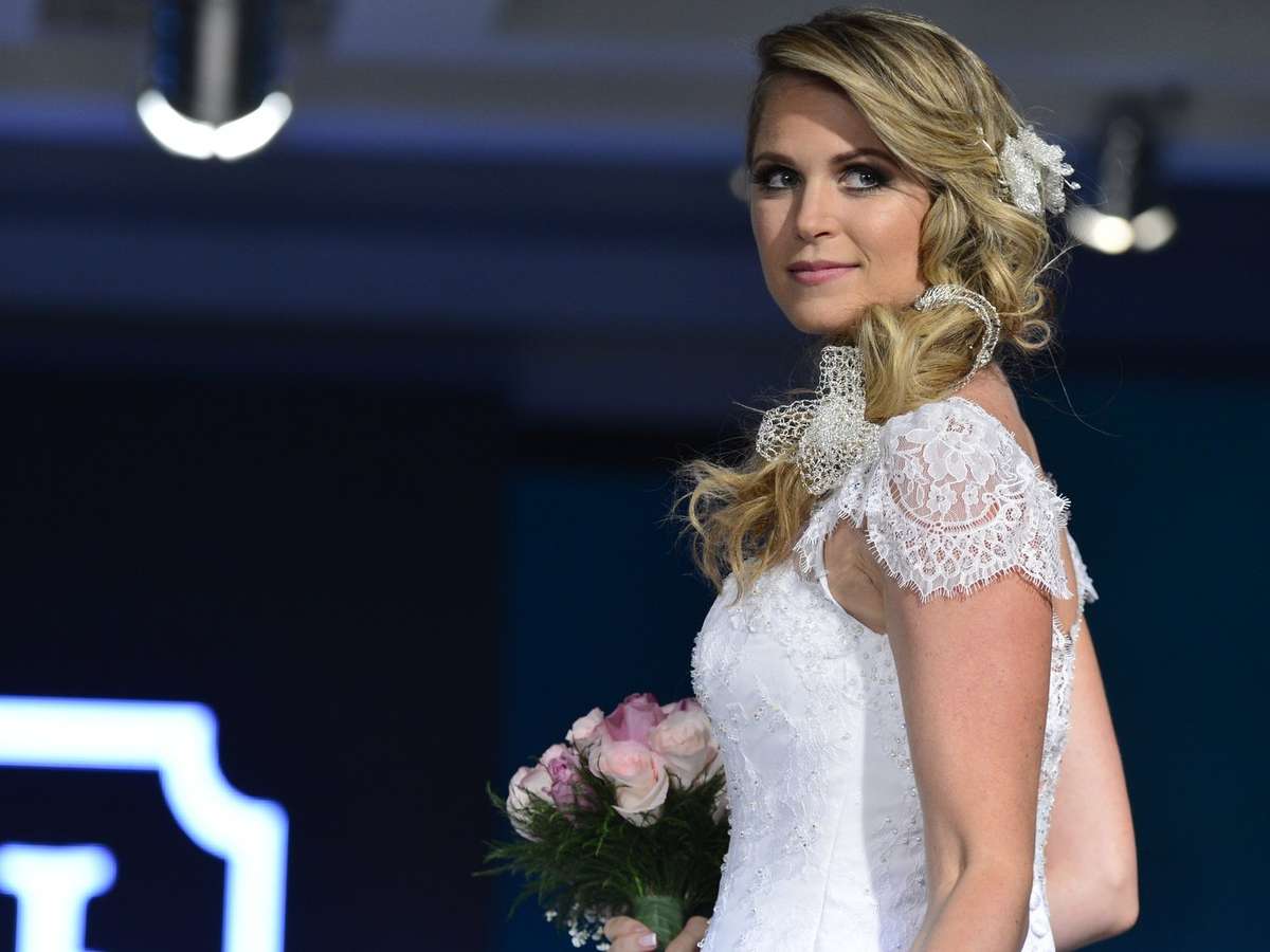 A areiz Susana Werner desfilou neste sábado no evento Inesquecível Casamento Weel, no hotel Royal Tulip, em São Conrado. Ela entrou na passarela com um modelo bordado nas mangas e corpete.