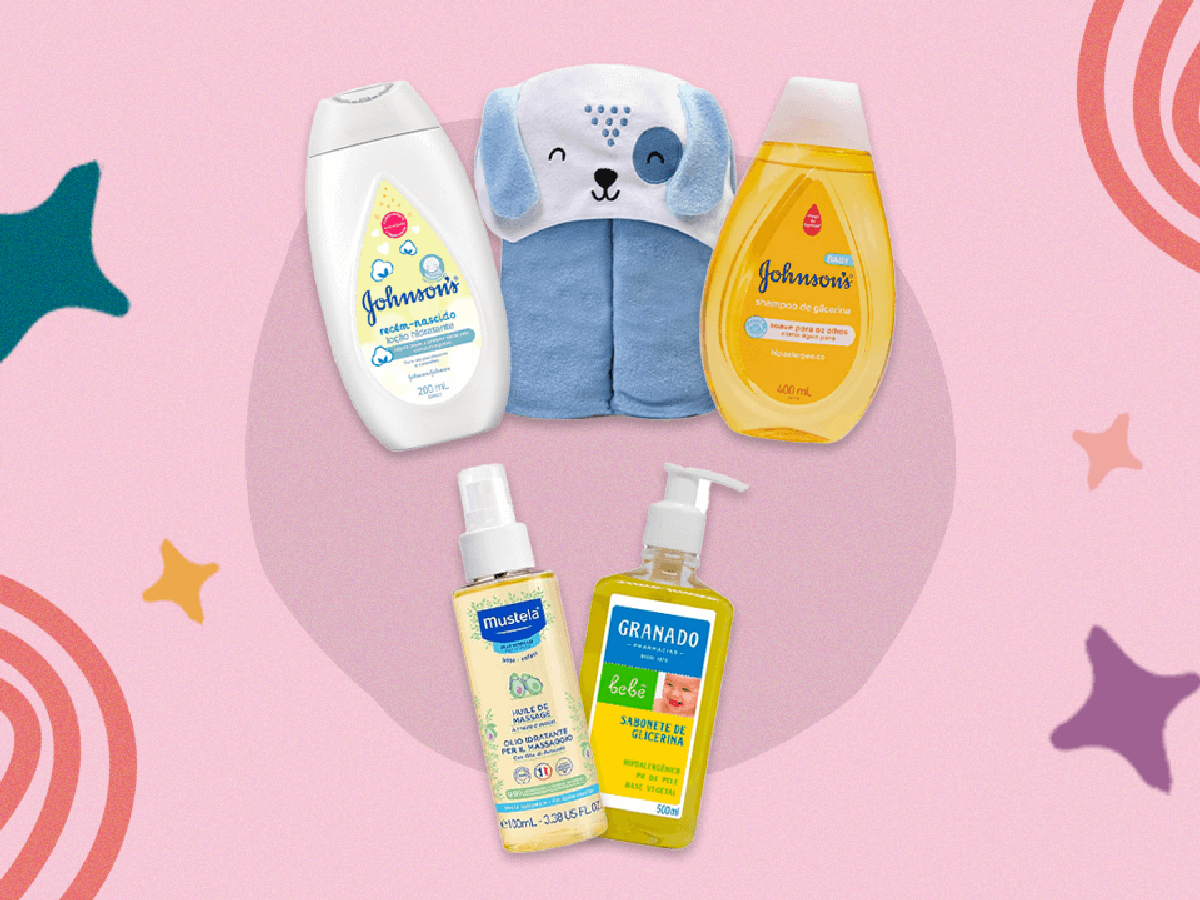 Escolha itens específicos para bebês, que sejam suaves e não irritem a pele ou os olhos. Sabonetes líquidos, óleos e xampus neutros são boas opções. Verifique também se os produtos são hipoalergênicos.