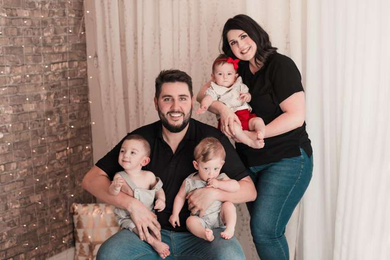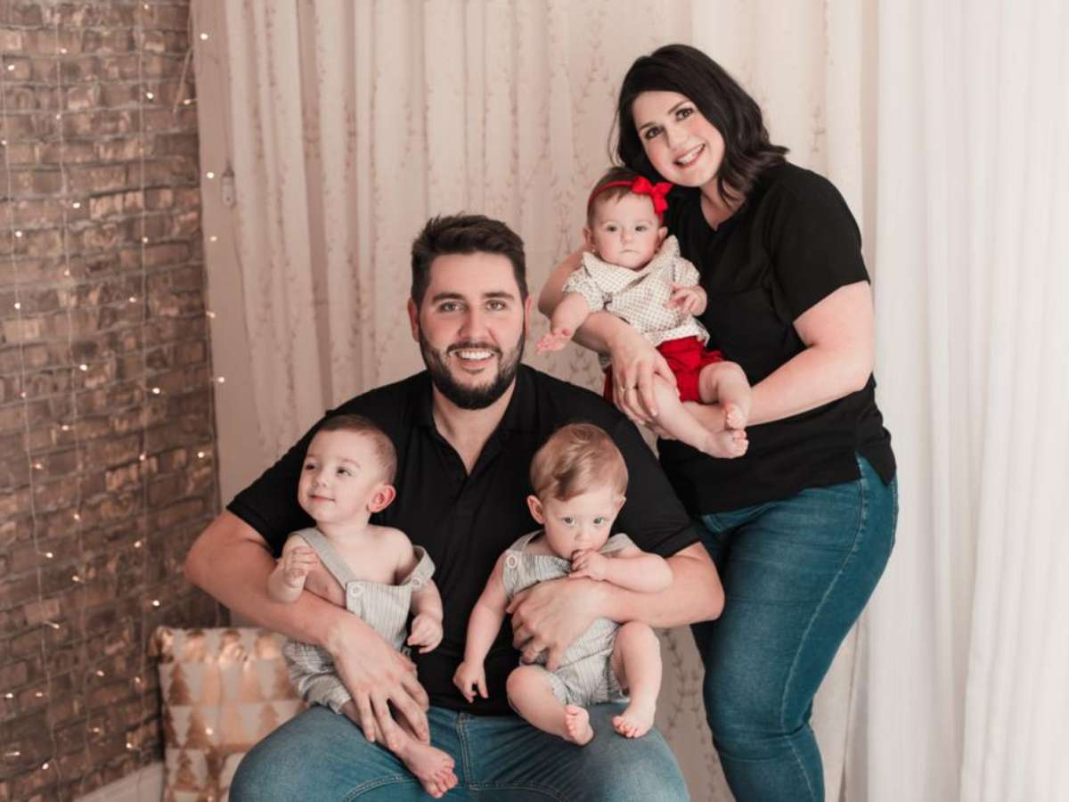 Fernanda Naiara Gans Kenski, de 36 anos, e o marido, Gustavo de Carvalho Neme Kenski, com quem está casada há 9 anos, desejavam ter filhos desde que se conheceram. Depois de descobrir a Síndrome de Ovário Policístico, passar por duas gestações anembrionárias e receber o diagnóstico de endometriose, Fernanda conseguiu engravidar após uma nova indução de ovulação. Mas qual não foi a surpresa quando ela e Gustavo souberam que havia cinco embriões dentro do útero? Infelizmente, na oitava semana de gravidez, um deles parou de se desenvolver, e a família passou, então, a esperar quatro bebês: Davi, Caio, Pedro e Luisa.