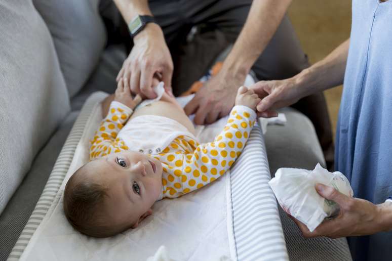 A rotina de cuidados não é complicada, pais! Se o pequeno já apresenta as assaduras na região coberta pela fralda, o ideal é que se comece pela limpeza adequada do local:
