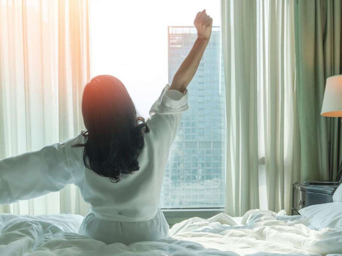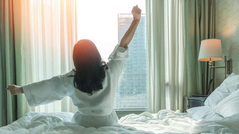 Evite pular da cama assim que o despertador tocar pela primeira vez. Espreguiça-se com calma e sinta cada músculo do seu corpo por um minuto.