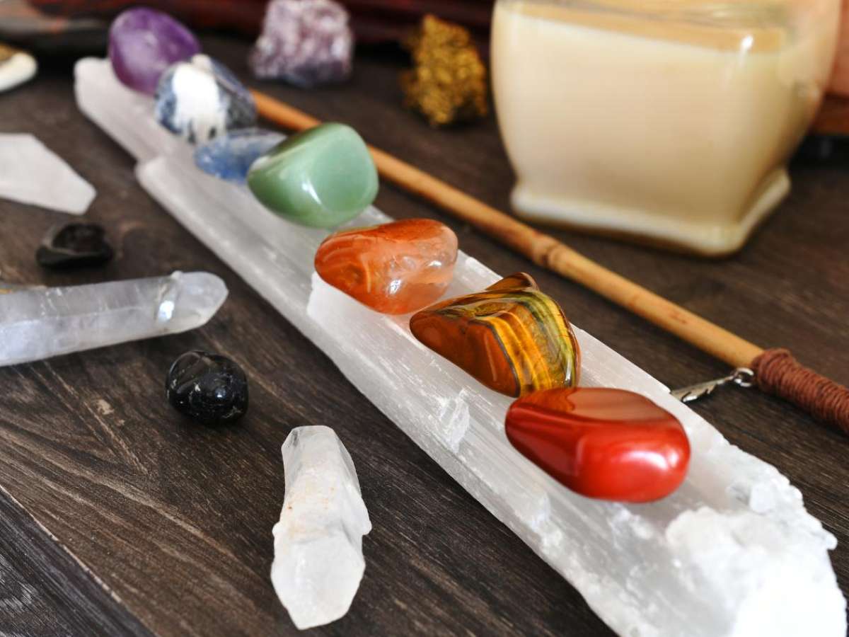 Selenita: Coloque seus cristais sobre uma placa de Selenita. Ela é uma pedra autolimpante que purifica as outras.