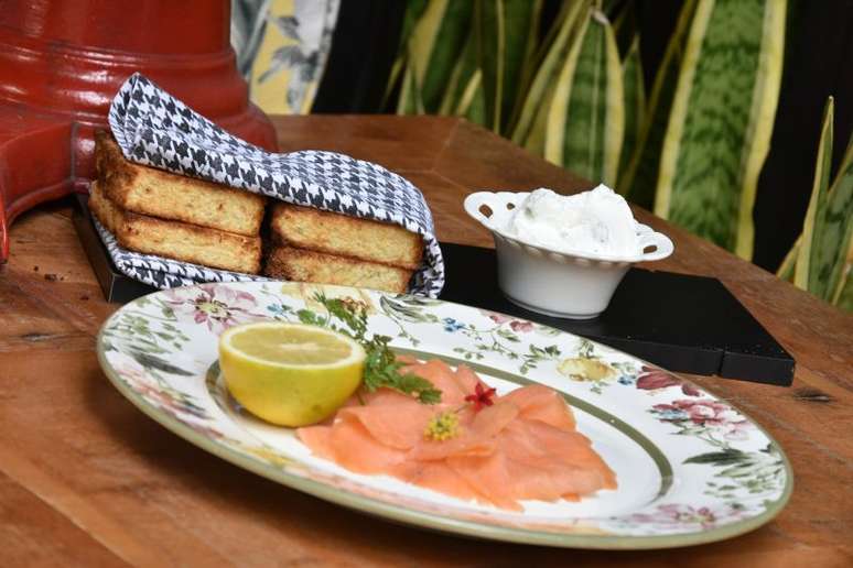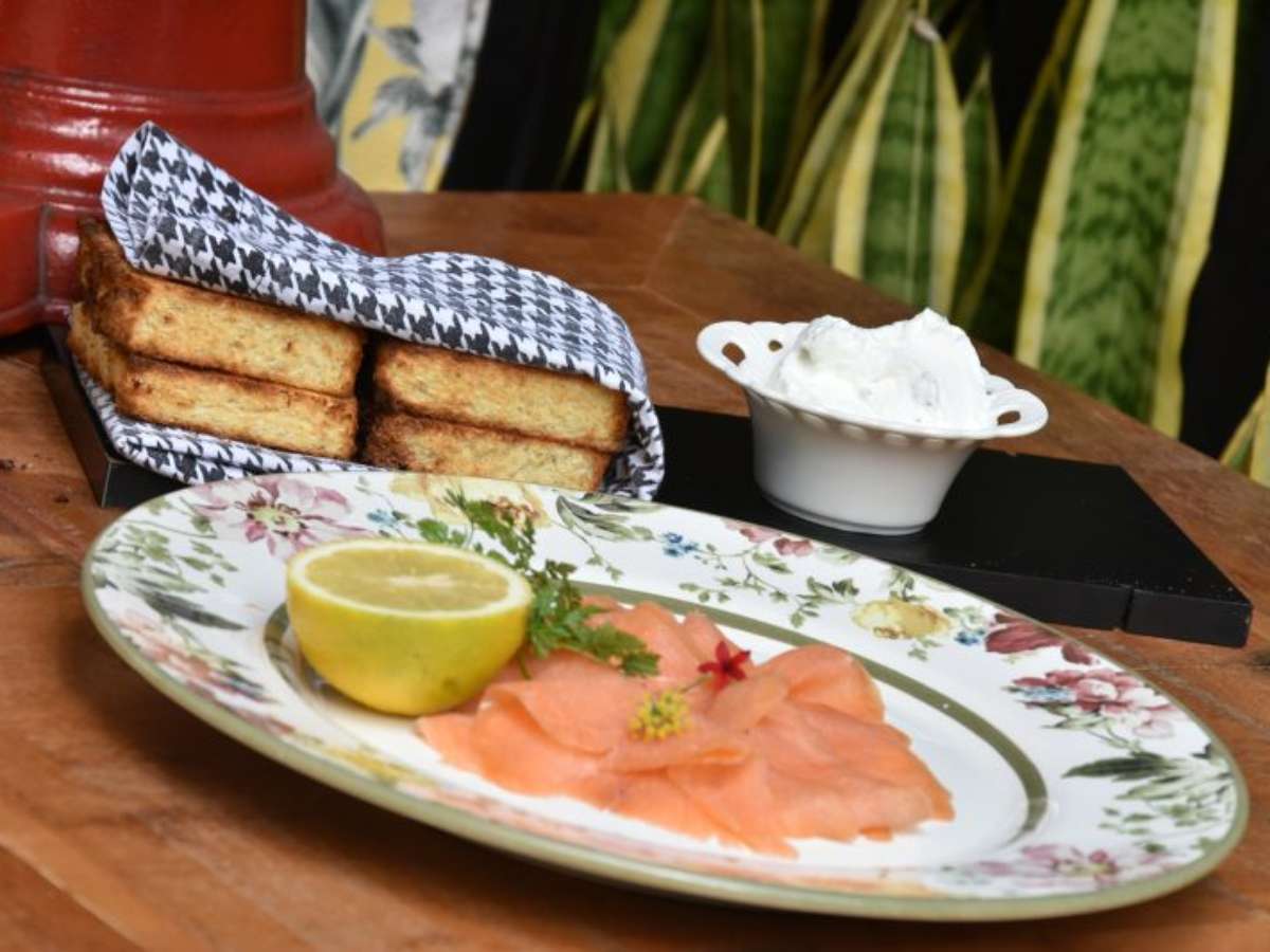 - Salmon Fumê defumado na casa com creme fresco e ervas finas (R$ 350/kg).