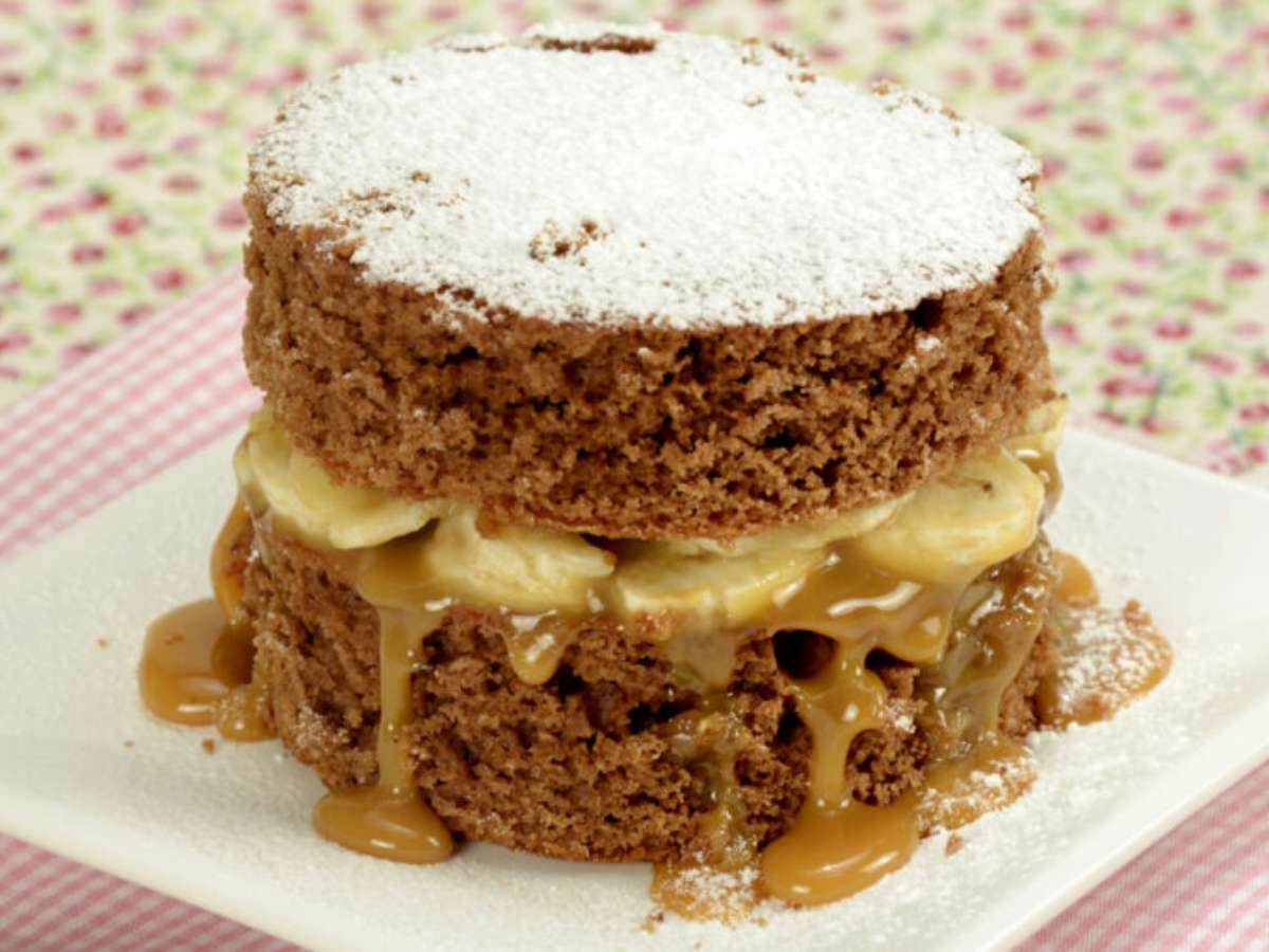 Bolo de banana com doce de leite