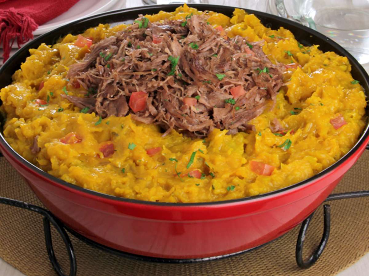 - Carne desfiada com purê de abóbora