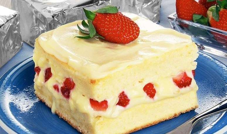 Saiba como fazer o bolo de morango com iogurte, uma sobremesa maravilhosa, fácil de fazer e que rende dez porções.