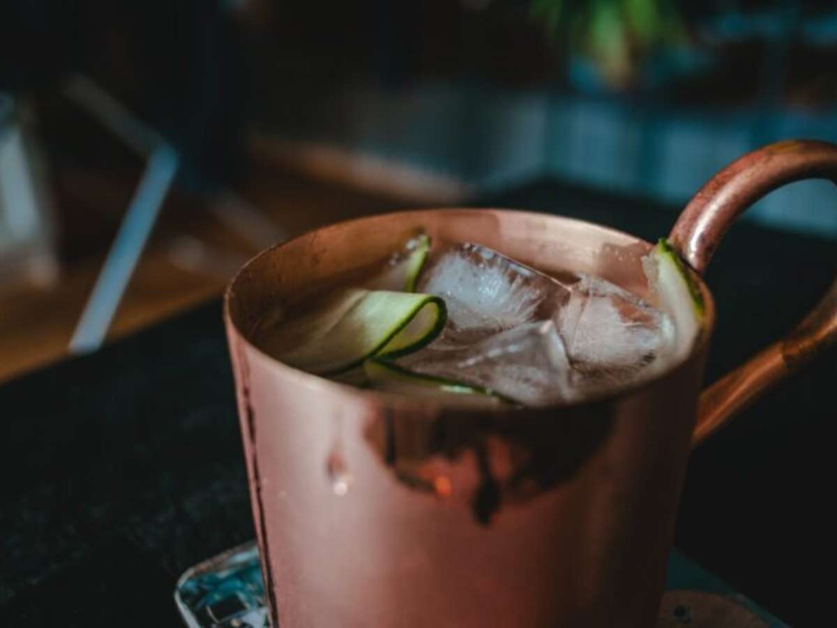 Na panela faça a redução com: água, açúcar, canela e gengibre - reserve. Em seguida, coloque na caneca com gelo 2 doses desse xarope de gengibre. Acrescente a vodka, o suco de limão e complete com água com gás. Misture. Para finalizar, decore com um rodela de limão e folhas de hortelã.
