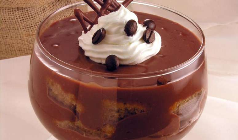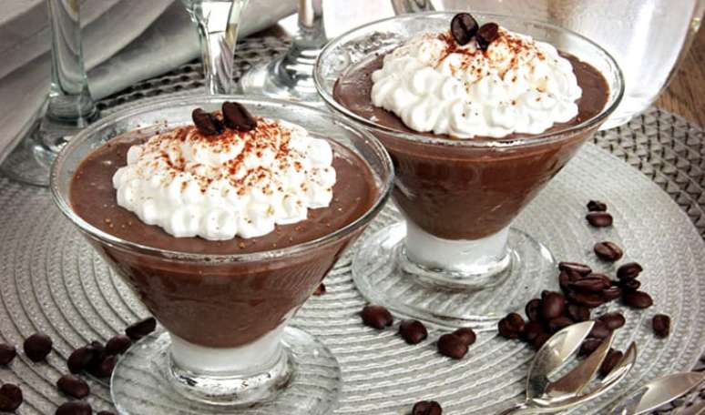 - Chantilly, chocolate em pó e grãos de café para decorar