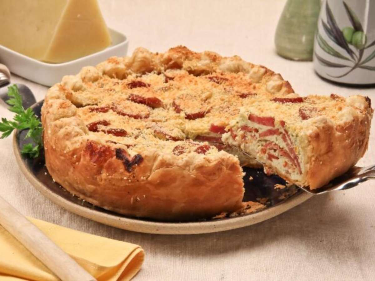 Torta aberta de calabresa e ricota