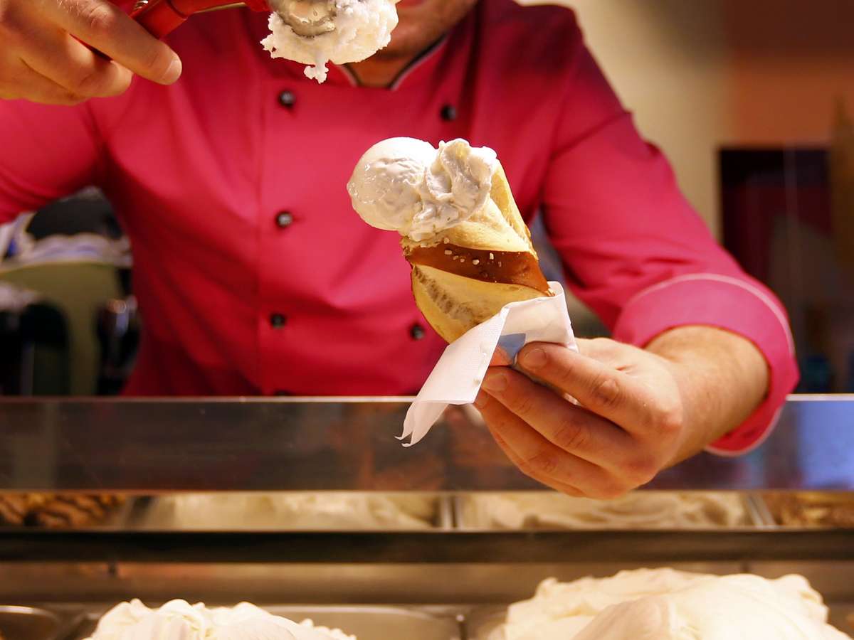 Ao invés da casquinha, o alemão serve o sorvete em pretzel no sabor mel e mostarda