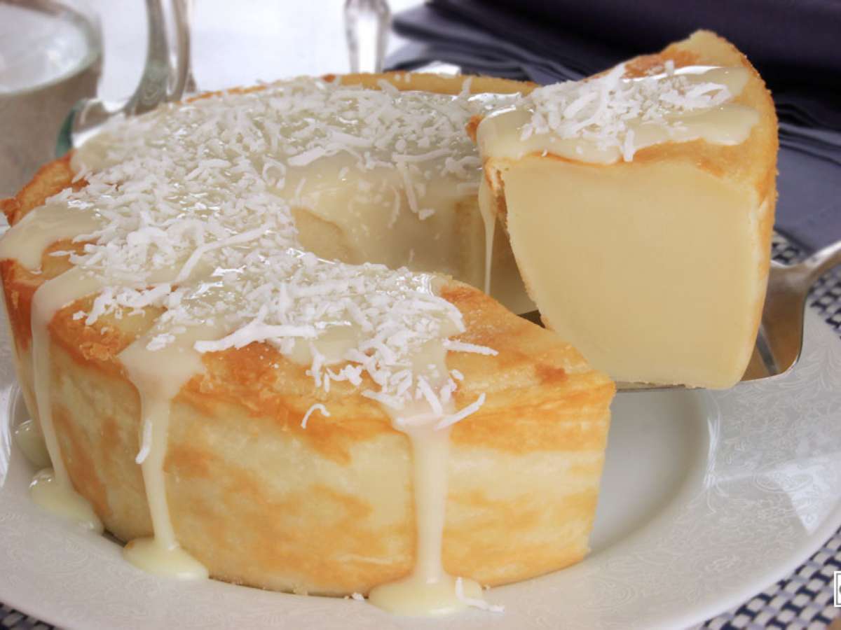 Misture os ingredientes da calda, espalhe sobre o bolo, polvilhe com coco e sirva em seguida.