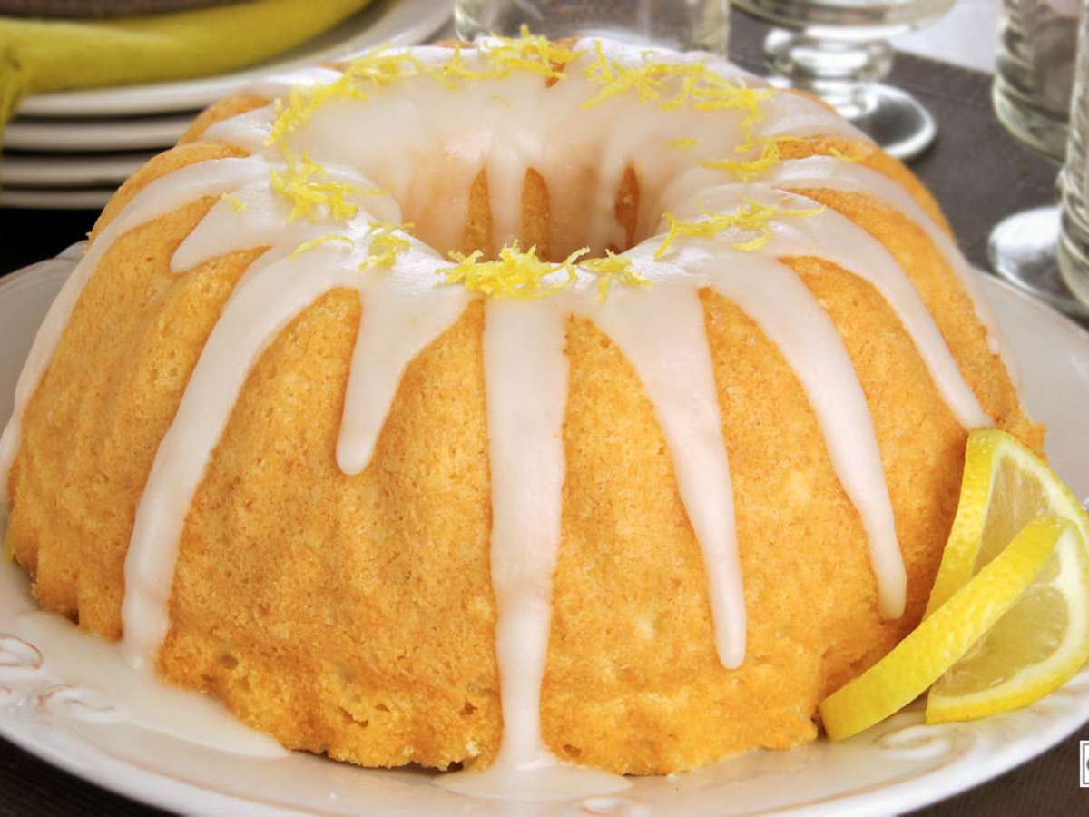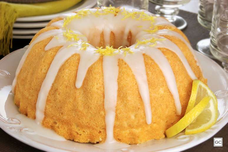 Desenforme o bolo, cubra com a calda e decore com as raspas de limão. Sirva em seguida.