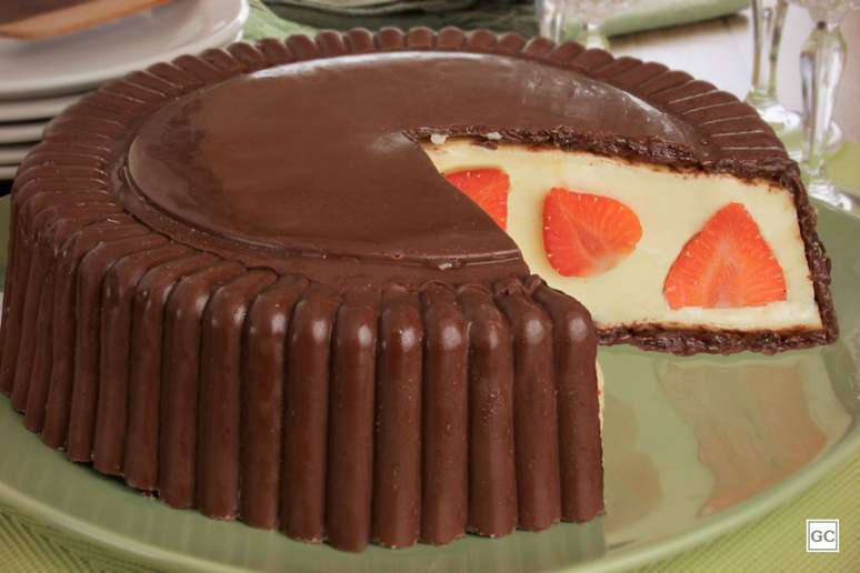 Misture com os morangos e despeje dentro da fôrma de chocolate.