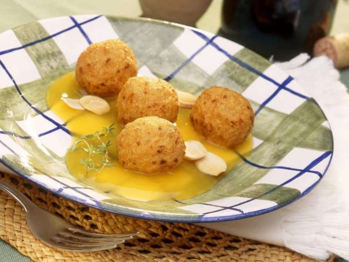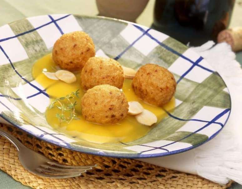 No liquidificador, bata todos os ingredientes das almôndegas, menos o óleo. Unte bem as mãos com 1 colher (sopa) de óleo e faça 24 almôndegas. Em uma panela, aqueça em fogo alto o restante do óleo e frite as almôndegas até ficarem douradas e cozidas por dentro. Em outra panela, em fogo alto, cozinhe o suco de maracujá, a água, o mel e a maisena por 5 minutos, mexendo sempre para que a maisena não empelote. Sirva as almôndegas com o molho e polvilhe com amêndoas em lascas.