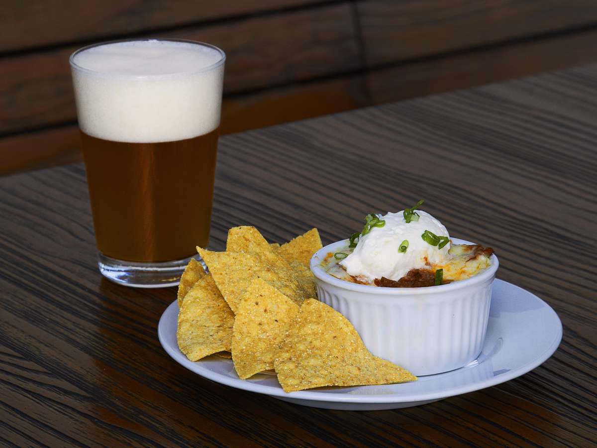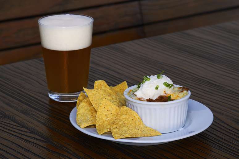 210 Diner: chilli com carne. Acompanha nachos, sour cream e american cheese + chopp Bamberg Wiezen