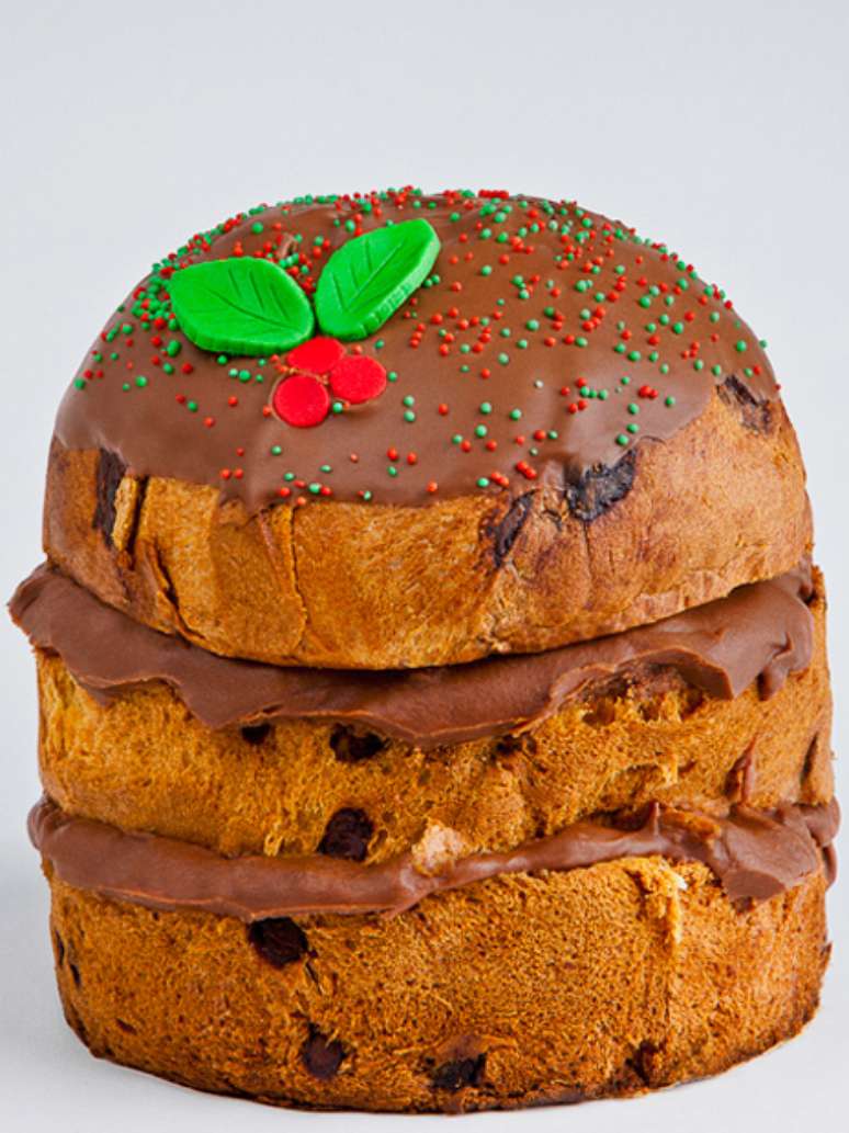 Panetone recheado de doce de leite e parcialmente coberto com chocolate ao leite, de 800 gramas. Por R$ 52,80. Da Munik. SAC: (11) 2281-3500