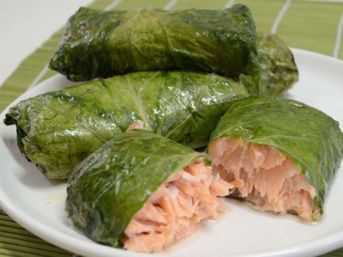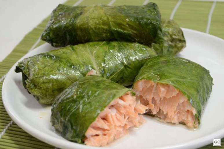 Envelope de couve e salmão saboroso e nutritivo