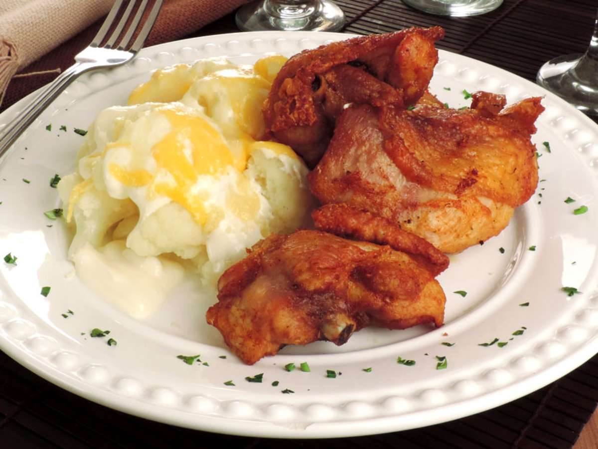 Frango com couve-flor gratinada