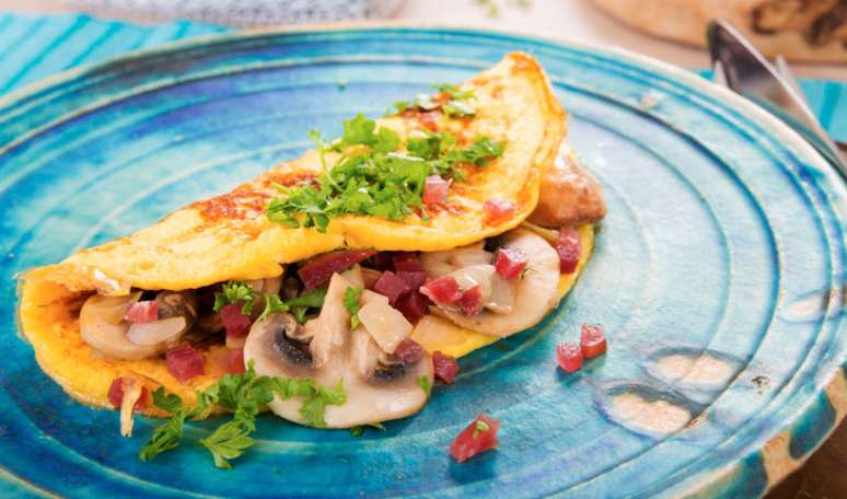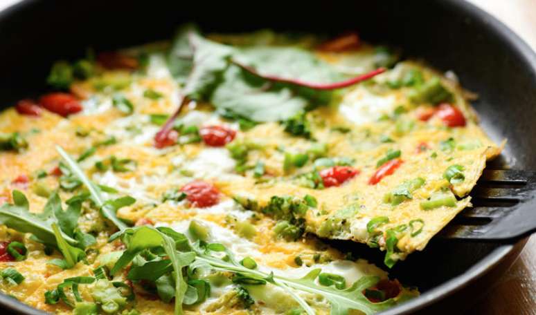 17. Para incrementar o sabor da omelete de frigideira, experimente adicionar à mistura de ovos queijo ralado, tomate em cubinhos, cheiro-verde picado, salsicha fatiada, cebola picada ou azeitona picada.
