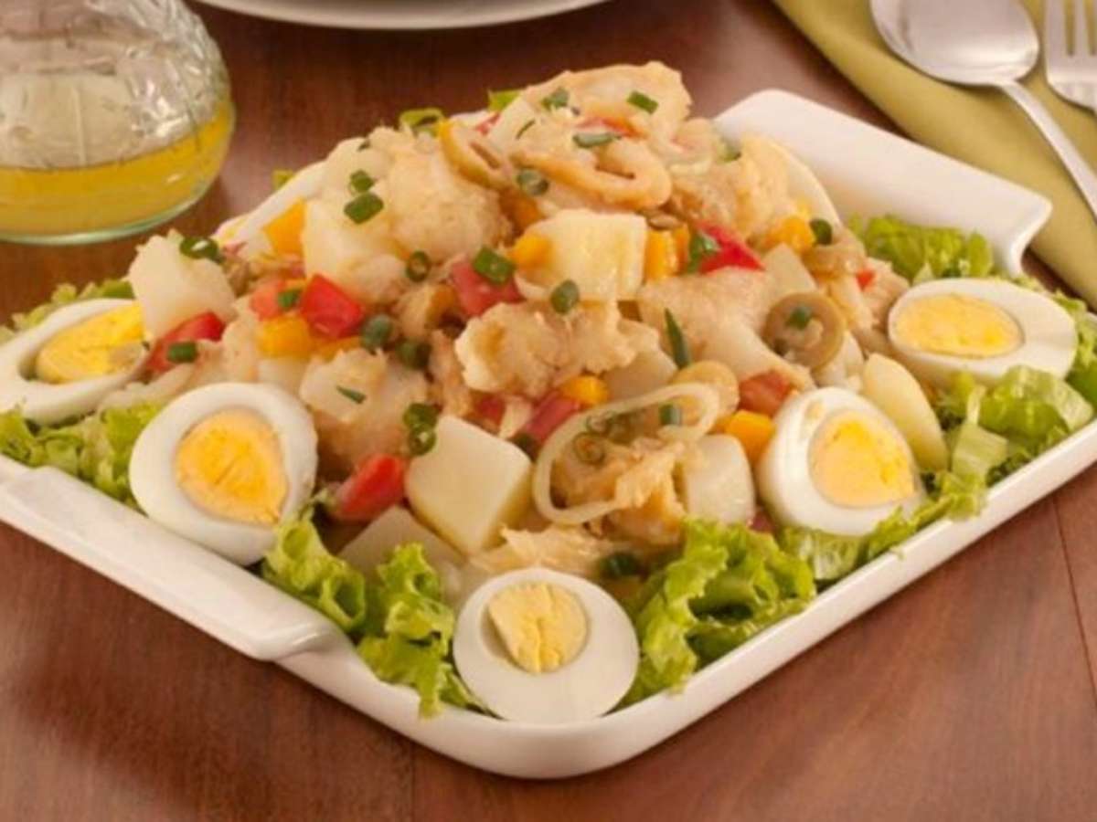 Que tal experimentar uma salada que vale por uma refeição inteira? Esta salada de bacalhau e ovos tem ingredientes saborosos e vai bem a qualquer hora! Além disso, fica pronta em 30 minutos e é servida com um molho delicioso. Faça ainda hoje e saboreei com toda a família! Veja o passo a passo!