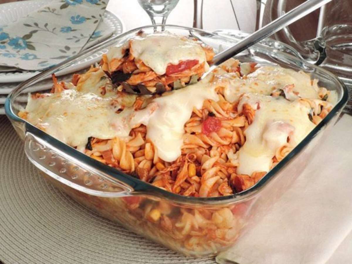 Macarrão de forno com molho de frango cremoso para se deliciar