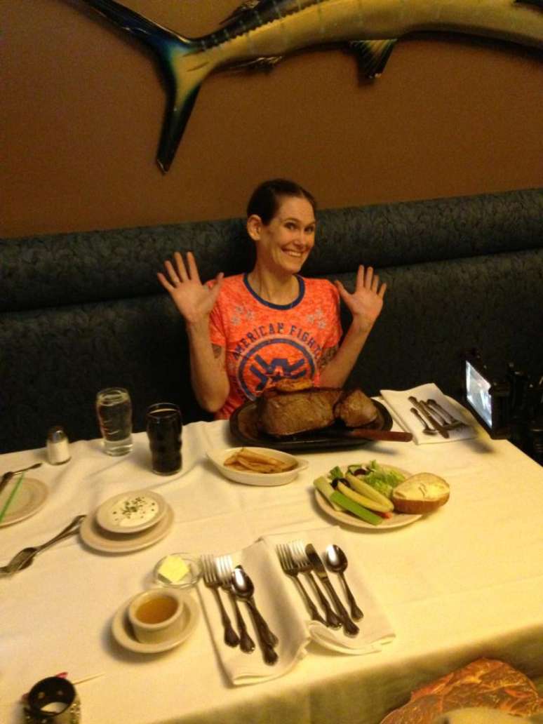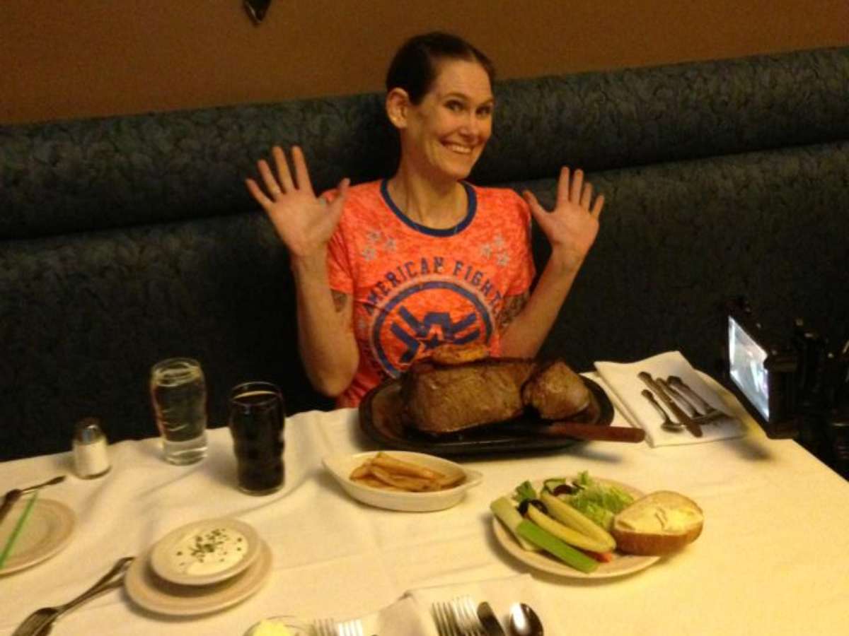 Entre as competições, ela comeu 4,8 Kg de cogumelos fritos em oito minutos e oito risoles de carne em um minuto e 46 segundos. Além disso, ela não deixou uma migalha de um sanduíche de 2,26 Kg recheado de carne de porco, frango, bacon, peito de peru e queijo frito em menos de oito minutos