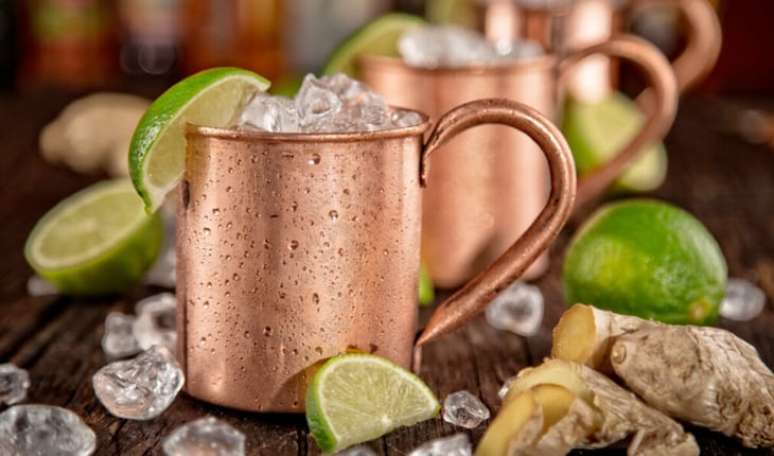 Em uma caneca de cobre, coloque o gelo, o açúcar e o suco do limão. Em seguida, adicione o gin, o xarope ou cerveja de gengibre e as gotas de Angostura. Para finalizar, vale colocar rodelas finas de gengibre e uma fatia de limão para decorar o copo.