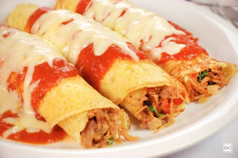 Panqueca é uma receita sempre versátil e deliciosa. Esta é feita com carne de pernil, ou seja, preparo perfeito para reaproveitar as carnes da Ceia de Natal! O melhor: a receita é fácil de fazer e fica muito saborosa! Aprenda a preparar a panqueca caipira ao molho de tomate com o Guia da Cozinha e faça ainda hoje: