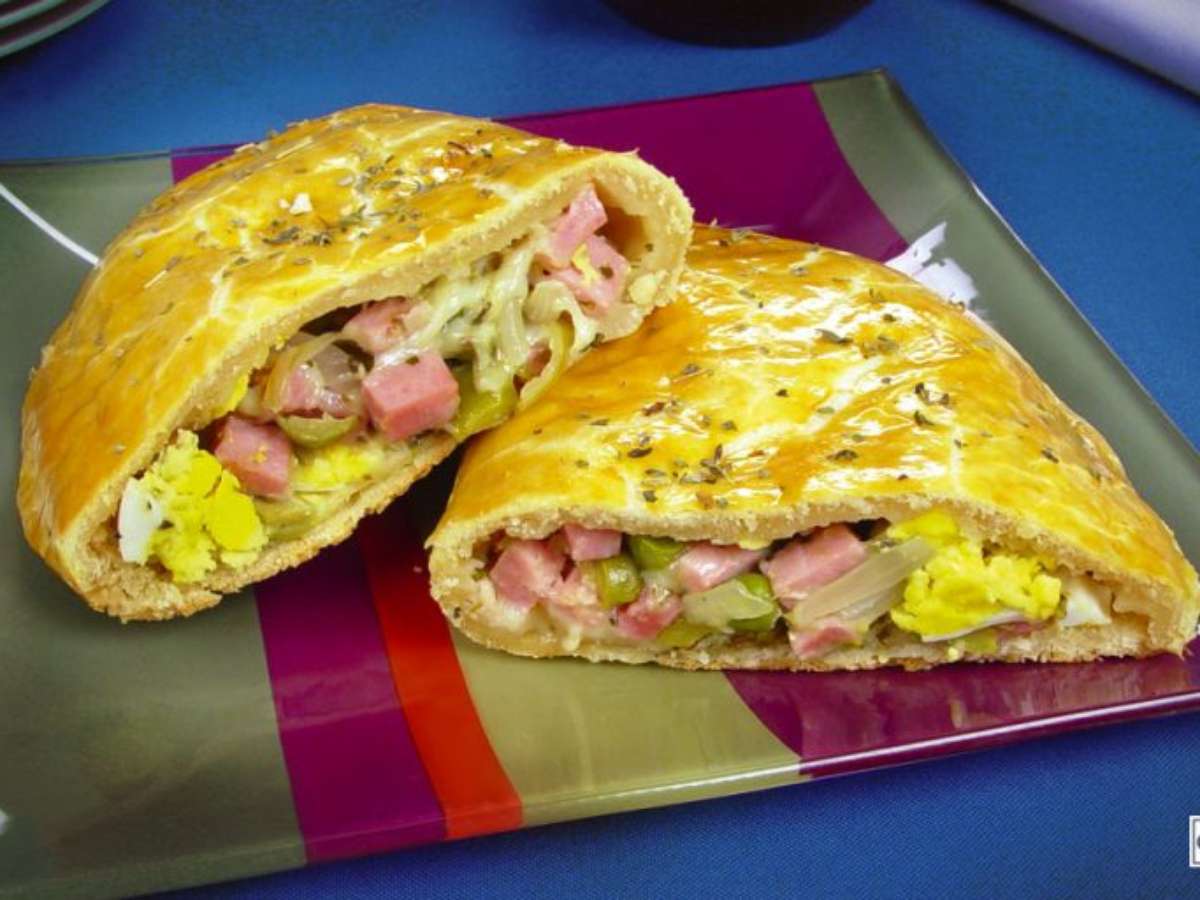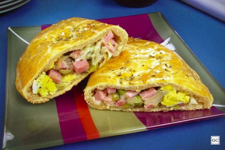 Abra a massa com a ajuda de um rolo entre duas folhas plásticas até obter um círculo com 30cm de diâmetro. Retire o plástico e transfira para uma fôrma retangular média. Espalhe o recheio e dobre ao meio apertando a borda com um garfo para fechar. Pincele com a gema, polvilhe com o orégano e leve ao forno médio, preaquecido, por 40 minutos ou até dourar. Retire do forno e sirva.