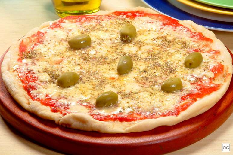 Divida a massa em 2 porções e abra em círculo com ajuda de um rolo. Leve ao forno médio, preaquecido, por 10 minutos.