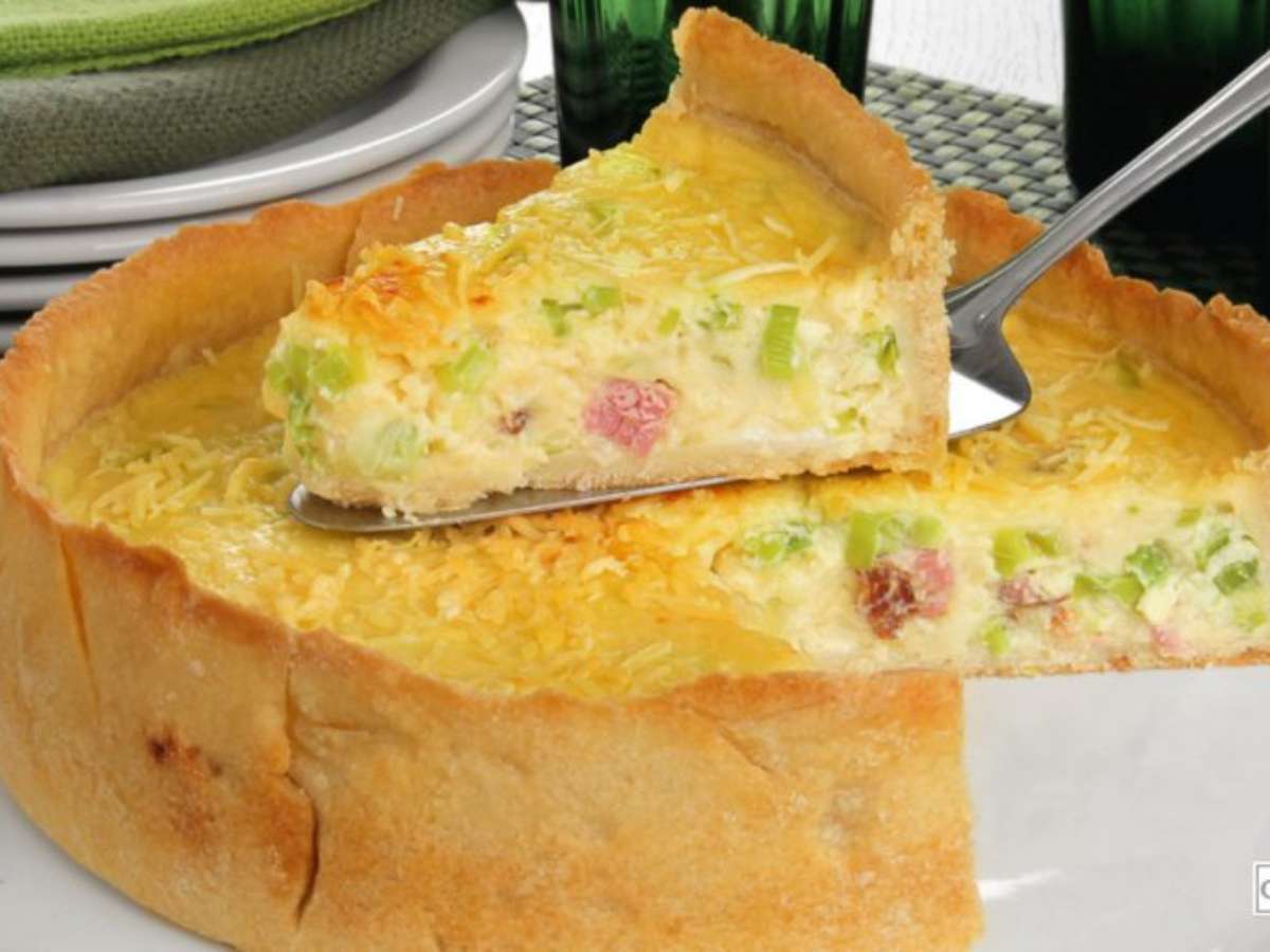 Quiche de queijo e alho-poró gratinada