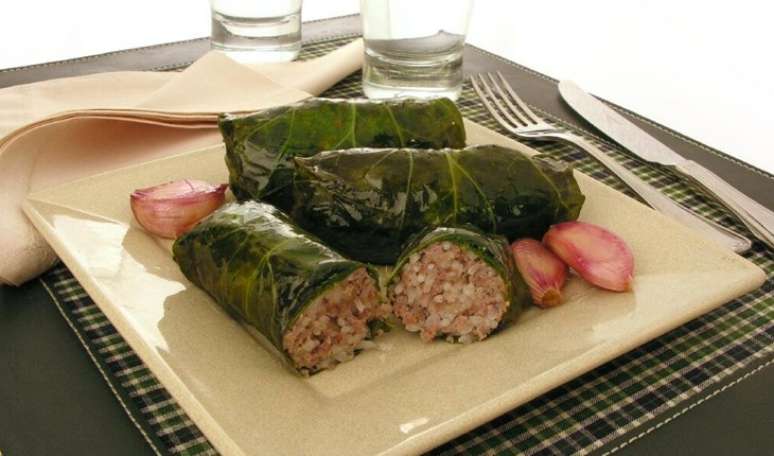 Outro prato típico da culinária árabe é o famoso charuto. Essa opção com folha de uva fica uma delícia e ainda é saudável!