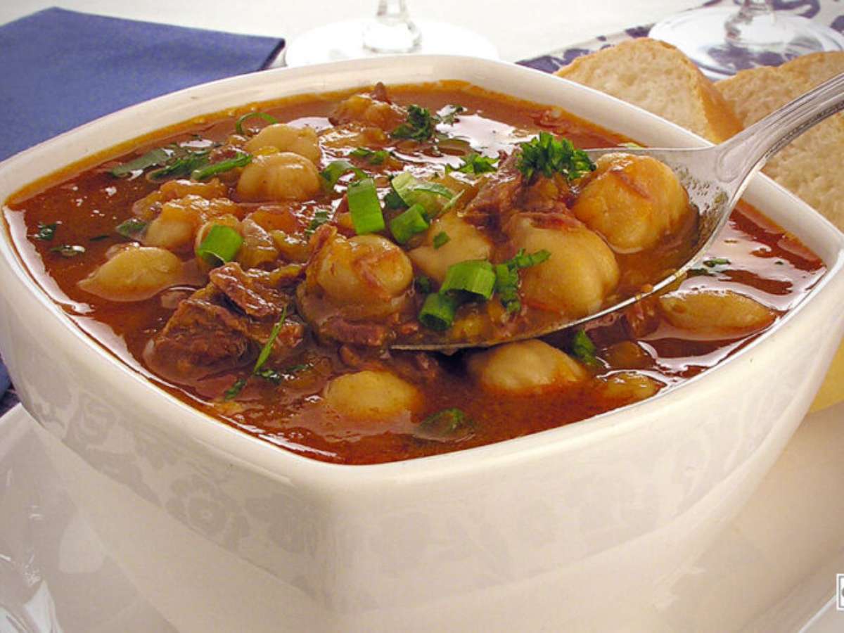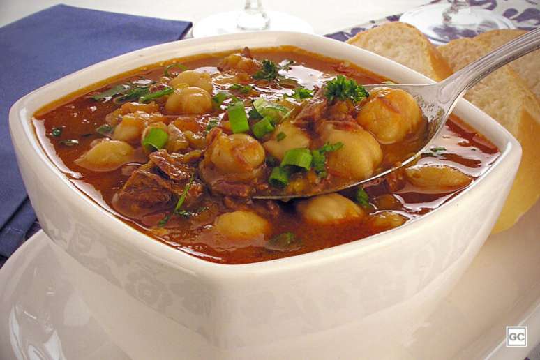 Sopa de abóbora com grão-de-bico e costela