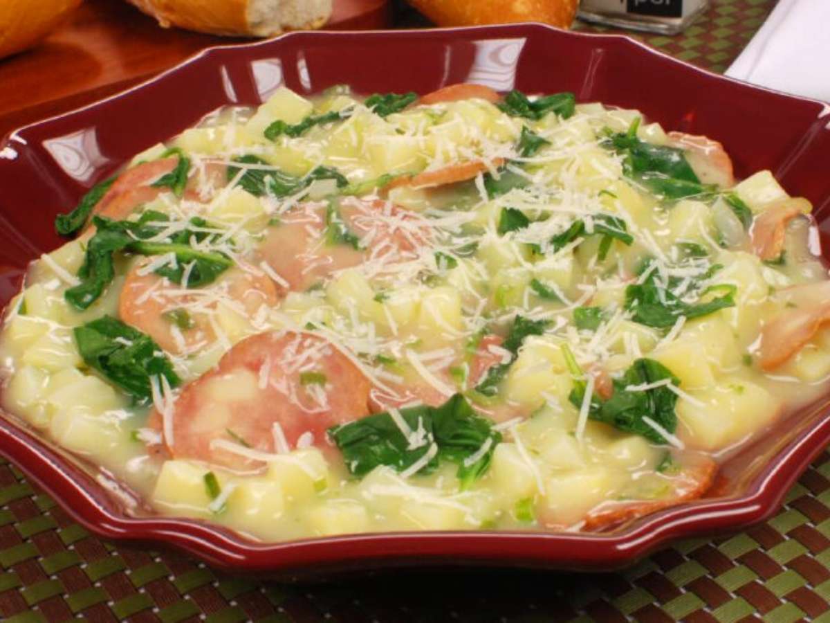 Transfira para uma sopeira, polvilhe com parmesão e sirva em seguida.