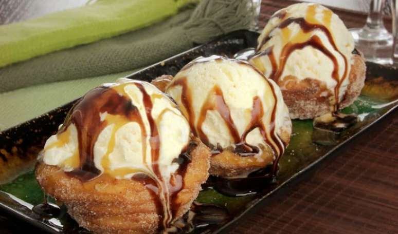 Se quiser inovar no doce, aposte nessa taça de churros com sorvete e surpreenda! Com certeza ninguém nunca comeu algo igual.