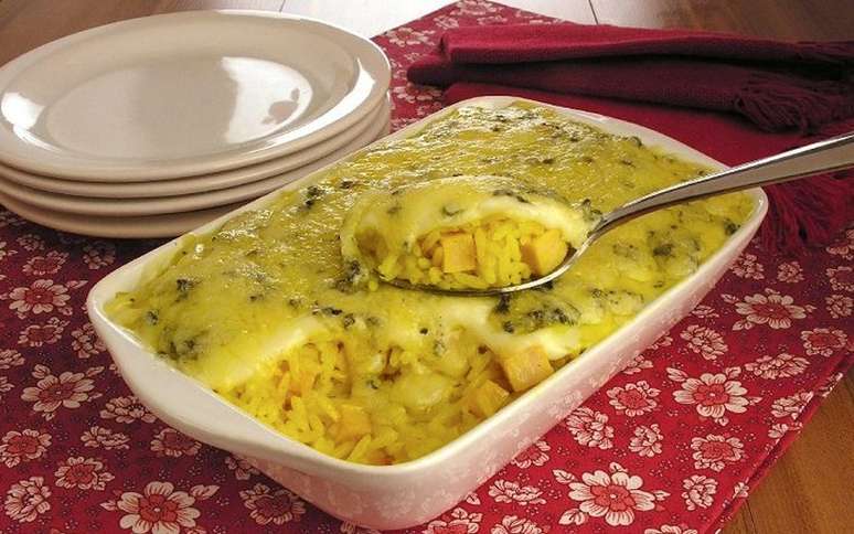 A receita clássica de arroz de forno cremoso não poderia ficar de fora da lista, não é mesmo? Por ser a variação mais popular do prato, promete agradar qualquer paladar!
