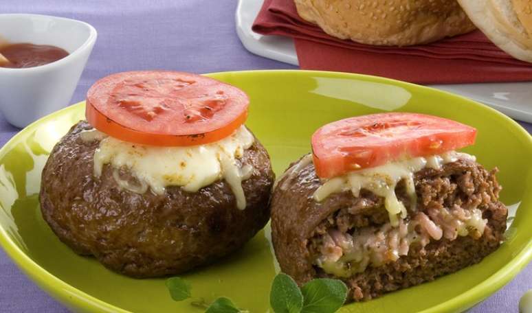Se você ama presunto e queijo, não pode deixar de experimentar esse delicioso hambúrguer recheado!