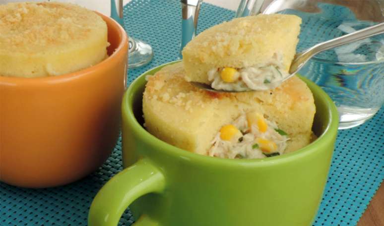 Nada como uma deliciosa torta de frango. Essa versão na caneca fica uma delícia. Experimente!